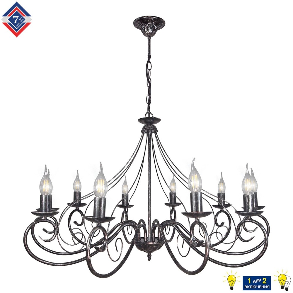 Подвесная люстра Петрасвет S1267-10 – Элегантное освещение для вашего дома в классическом стиле Эта роскошная подвесная люстра – идеальное решение для создания атмосферы уюта и изысканности в вашем интерьере. Модель S1267-10 от бренда Петрасвет, производимого в России, сочетает в себе классическую эстетику, современный дизайн и высокое качество исполнения. Люстра станет настоящим украшением гостиной, столовой, спальни или другого помещения, где вы стремитесь к созданию атмосферы благородства и гармонии. Основные характеристики и преимущества: Производитель: Петрасвет – российский бренд, известный своим качеством и надежностью. Стиль: Люстра сочетает в себе элементы классического, неоклассического и прованс стиля, что делает ее универсальной и подходящей для различных интерьеров. Она идеально впишется в обстановку в стиле ретро, кантри, модерн и даже в современном минималистичном пространстве, если правильно подобрать остальные элементы декора. Материал: Светильник выполнен из прочного и долговечного металла, обработанного патиной серебра, что придает ему благородный и винтажный вид. Металл не только обеспечивает прочность, но и создает приятное рассеянное освещение. Размеры: Ширина основания люстры составляет 12 см, а высота – 68-85 см. Ширина светильника – 83 см, что обеспечивает достаточное пространство для размещения ламп. Размеры коробки – 18 x 56 x 56 см, что удобно для транспортировки и хранения. Тип монтажа: Люстра предназначена для подвесного монтажа, что позволяет установить ее на любой потолок. Для крепления используется крюк, обеспечивающий надежность и безопасность. Цоколь: Тип цоколя – Е14, что является стандартным и позволяет использовать лампы накаливания, светодиодные лампы или люминисцентные лампы. Количество ламп: В люстре установлено 10 ламп, что обеспечивает достаточное освещение для площади до 30-40 квадратных метров. Световой поток: Световой поток составляет 7500 лм, что обеспечивает яркое и равномерное освещение. Напряжение: Люстра рассчитана на напряжение 220 В. Гарантия: Производитель предоставляет гарантию на 7 лет, что подтверждает качество и надежность продукции. Материал плафона: Плафона в данной модели нет, что позволяет создать эффектный внешний вид и подчеркнуть красоту ламп. Упаковка: В комплекте с люстрой поставляется паспорт. Подробное описание и особенности: Эта роскошная подвесная люстра – не просто источник света, но и элемент декора, который способен преобразить ваш интерьер. Ее классический стиль и элегантный дизайн идеально дополнят любые предметы мебели и аксессуаров. Патиновая отделка серебра придает светильнику благородный и винтажный вид, создавая атмосферу уюта и тепла. Благодаря большому количеству ламп (10 штук) и высокому световому потоку (7500 лм) люстра обеспечит яркое и равномерное освещение, которое идеально подходит для различных помещений. Преимущества использования люстры Петрасвет S1267-10: Создание атмосферы: Люстра способна преобразить ваш интерьер, создавая атмосферу уюта, романтики или торжественности, в зависимости от выбранных ламп. Эффективное освещение: Высокий световой поток (7500 лм) и большое количество ламп обеспечивают достаточное освещение для площади до 30-40 квадратных метров. Долговечность и надежность: Люстра изготовлена из качественных материалов и имеет 